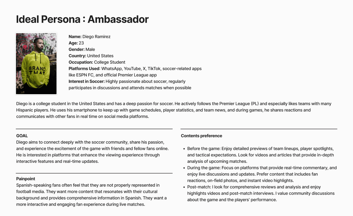 We recruited ambassadors to reflect real fan behavior and updated our personas accordingly. Based on these insights,