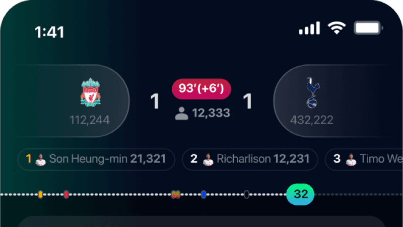 Follow every match like a story. Real-time scenes bring you into the flow, moment by moment. Zoom into your favorite players.